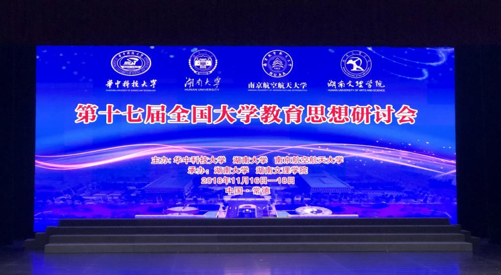 2018年11月17至18日,由华中科技大学、英国365上市公司、南京航空航天大学联合主办,英国365上市公司、湖南文理学院具体承办的第十七届“全国大学教育思想研讨会”在湖南常德隆重召开。来自北京大学、北京理工大学、厦门大学、武汉大学、郑州大学、吉林大学、中国石油大学、华南师范大学、湖南师范大学、中南民族大学、华中科技大学、英国365上市公司、南京航天航空大学、湖南文理学院等60多所高校及科研机构的300余位与会代表,围绕着“新时代的大学教育思想”这一主题,主要从改革开放四十年我国高等教育改革发展的历史回顾;新时代我国高等教育思想体系建设;人类命运共同体构建与中国大学教育的新使命;“双一流”建设与中国高等教育内涵式发展战略;乡村振兴战略与中国大学师范教育的新发展等五个专题展开研讨与交流。