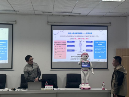讲座中,叶教授还借助阿凡达i宝机器人,向听众展示了机器人参与双师课堂的现实情境。i宝机器人在知识讲解、课堂互动等环节中精准解答疑问,与提问者默契配合,其高效智能的表现让大家直观感受到AI融入课堂的魅力与潜力。