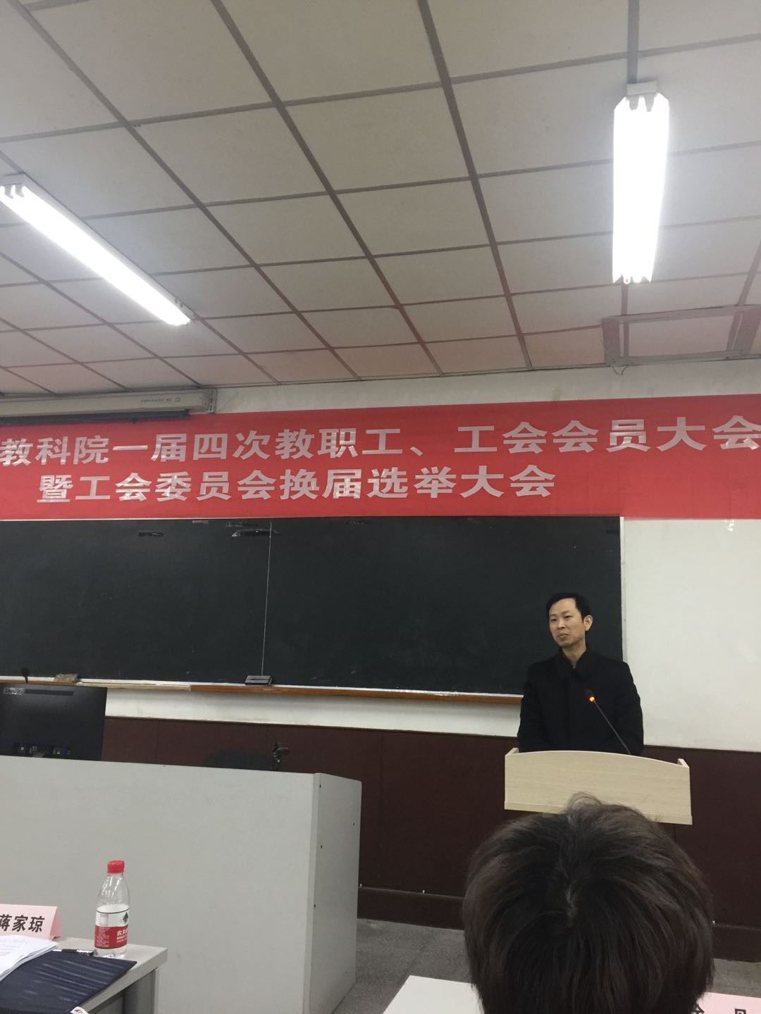 余小波院长在讲话中指出,学院2018年各项工作有序开展,人才培养质量不断提高,科学研究实力明显提升,校本研究逐步规范,办刊工作不断取得成效,人才引进和发表高水平论文取得关键性突破,学院发展呈良好上升态势。当前学校处于决战“双一流”的关键时期,学院在各方面面临着发展机遇,学院建设发展目标已明确,具备较好的发展基础,同时也充满挑战,希望大家群策群力,奋力拼搏,促进学院各项工作迈上新台阶。学院党总支书记、新当选的学院工会主席阳征同志在总结讲话中指出,今后一段时期,全院上下要齐心协力、克难攻坚、真抓实干,提振精神,增强主人翁意识,为推进学院改革与发展事业、助力学校“双一流”建设做出新的更大的贡献!