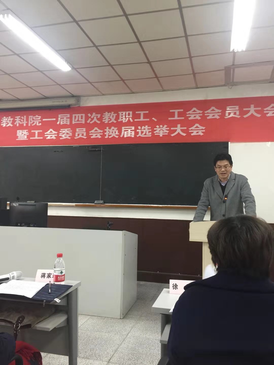 2019年1月23日上午,英国上市官网365召开一届四次教职工、工会会员大会暨工会委员会换届选举大会。大会在雄壮的国歌声中开幕,会议应到代表23名,因出国、出差、生病等原因请假4名,实到19名,符合法定人数。大会由副院长蒋家琼教授主持。校工会常务副主席龚完全同志出席大会并讲话,回顾了学校工会近年来的工作成绩,通报了学校工会今后工作的重点,对教科院部门工会工作给予了高度肯定。院长余小波教授代表学院作行政工作报告,回顾了2018年工作,提出了2019年学院工作的总体思路、工作目标和重点任务;办公室主任谭竞雄同志作学院2018年度财务工作报告,并就学院2018年年度绩效分配方案实施细则作了说明;院工会副主席李震声同志代表第一届工会委员会作了学院工会工作报告;袁建林老师就一届三次教职工、工会会员大会提案落实情况与本次大会提案征集情况作了说明。大会以举手表决的方式,通过了学院行政工作报告、财务工作报告、工会工作报告、提案工作报告和年度绩效分配方案实施细则。此后,大会进行了工会委员会换届选举,以无记名差额投票选举的方式,选出了以阳征为主席、李震声、陈剑光、柏静、袁建林为委员的新一届工会委员会。