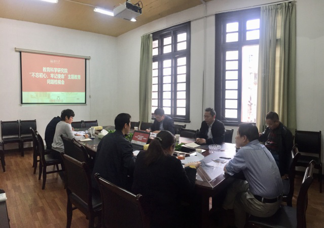 11月11日下午,按照学校“不忘初心、牢记使命”主题教育工作部署安排,我院领导班子在教科院310会议室召开了对照党章党规找差距问题检视会,学校督导组成员宋杰、柳志刚到会指导,院党总支书记阳征主持会议。