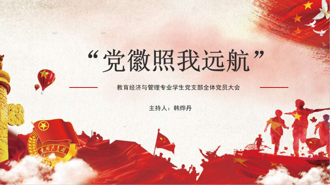6月14日下午,我院教育经济与管理专业学生党支部召开线上全体党员大会,开展“党徽照我远航”主题党日活动。此次会议由支部副书记韩烨丹同志主持,徐丹老师受邀参加。