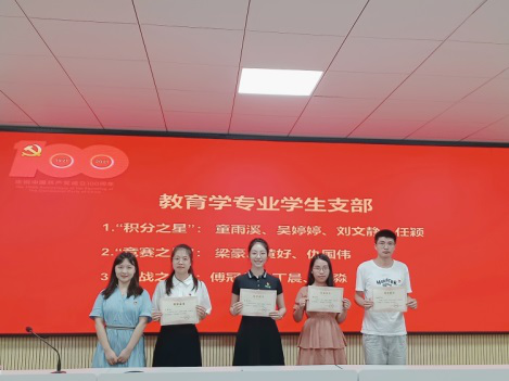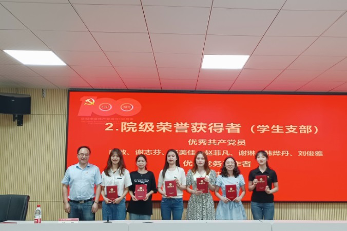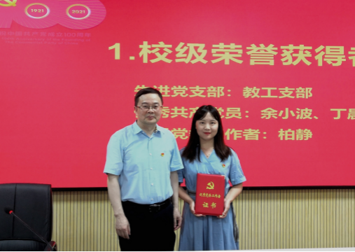 在今年上半年的党史学习教育中,学院涌现出一大批积极分子。教工支部书记朱恬恬、辅导员柏静分别为教工支部、学生支部“党史学习教育”学习积极分子颁发奖状。