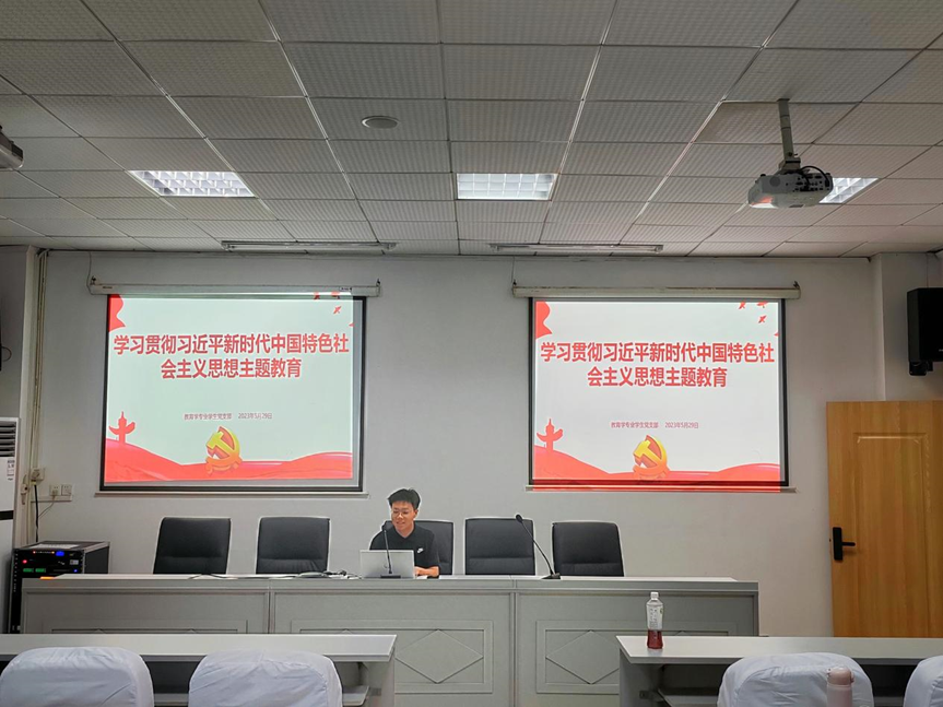 5月29日晚,我院教育学专业学生党支部在银杏楼102报告厅开展“学习贯彻习近平新时代中国特色社会主义思想主题教育”党课。会议分为主题党课学习与心得分享两项议程,会议由支部书记刘伟豪同志主持,支部全体党员参会。