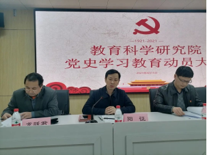 阳征书记指出,要通过党史、校史、院史教育,深挖学校、学院发展办学过程的红色基因,用好学校红色资源“鲜活教材”,开展集中研讨、专题党课、实地研学和“学党史、践承诺、见行动”等活动,把学习教育成果转化为推动学院高质量发展的实际成效,发挥好教科院的独特职能优势,为建设富有历史文化传承的中国特色世界一流大学书做出贡献,以实际行动和优秀业绩庆祝党的百年华诞。