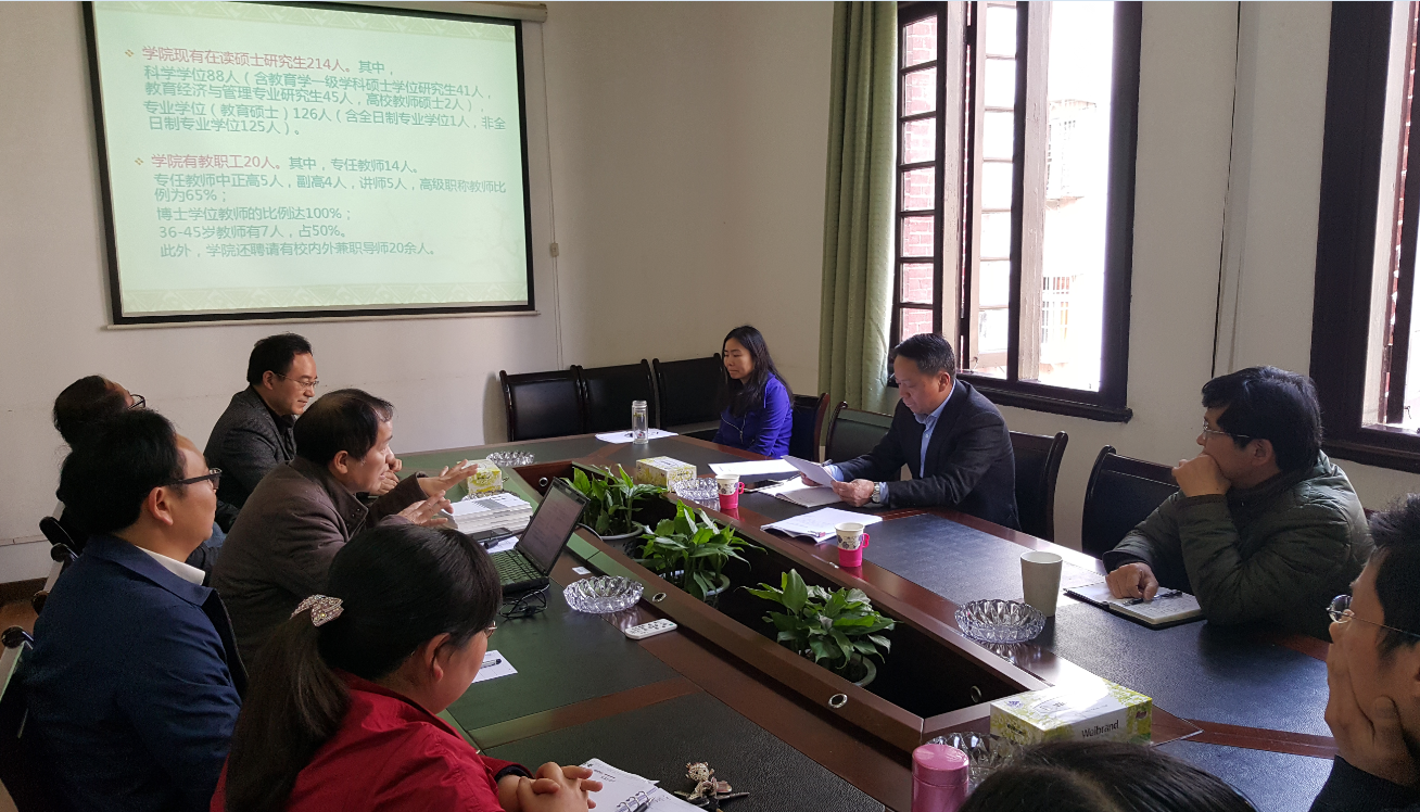 段献忠校长分析展望了高等教育发展的新常态,强调指出我国高等教育正进入改革发展的关键期,许多传统的思路和办法已经不能适应发展需要,迫切需要高质量的教育理论研究的指导。段校长对教科院的研究工作提出了新的更高要求,强调学院的校本研究应该突出计量研究的方法,力争用事实讲话,用数据说话。同时,段校长也对教科院发展过程中面临的学科建设、师资队伍及办公场所等困难表现出了充分的关注,表示学校将会尽力帮助学院解决发展的困难,支持学院发展。段校长希望学院应该努力有所作为,要为学校、湖南省教育厅以及其它相关部门和单位提供更高端的咨询服务,真正起到参谋和智囊的作用。