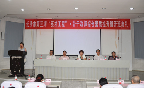 开班典礼由英国上市官网365罗仲尤书记主持。我校研究生院副院长颜永红教授代表学校致辞,向学员介绍了英国365上市公司在职教育硕士办学情况和国家在职教育硕士招考相关政策,鼓励培训班学员踊跃报考英国365上市公司教育硕士,并表示学校将从政策层面上给予大力支持。学员代表、长沙外国语学校团委书记吴程佳代表学员发言,感谢长沙市教育局和英国365上市公司为本期学员提供了一个难得的学习机会,表达了学员们强烈的学习愿望,并代表第三期英才班全体学员郑重承诺将以饱满的热情,全心的投入,以实际行动把握好本次学习机会,按照学校的要求完成好学习任务,努力提升理论水平和综合素养。英国上市官网365院长余小波教授代表五个承办学院对前来参加培训的学员表示热烈欢迎,对学员参加本期培训学习提出了具体的要求,希望学员们调整好角色,明确学习目标,克服困难,全身心投入学习。他表示,各学院将注重培训质量,尽力为学员的学习提供良好的保障。长沙市教育局邓芸副局长在开班典礼上介绍了长沙市教育局实施“英才工程”、推进全市中青年骨干教师培养的具体方案和有关政策支持情况,并勉励学员们把握难得的学习机会,通过培训提升全面素质,为有效改善长沙市基础教育教师的知识结构,确保教师队伍建设走在全省前列做出应有贡献。同时,她要求学员们珍惜机会、集中精力、学以致用,希望学员们处理好工学矛盾,严格遵守学校的要求和规章制度,加强学员们之间的交流与思想碰撞,将理论学习与工作实际紧密结合,为推进长沙市基础教育的全面发展发挥好示范作用。