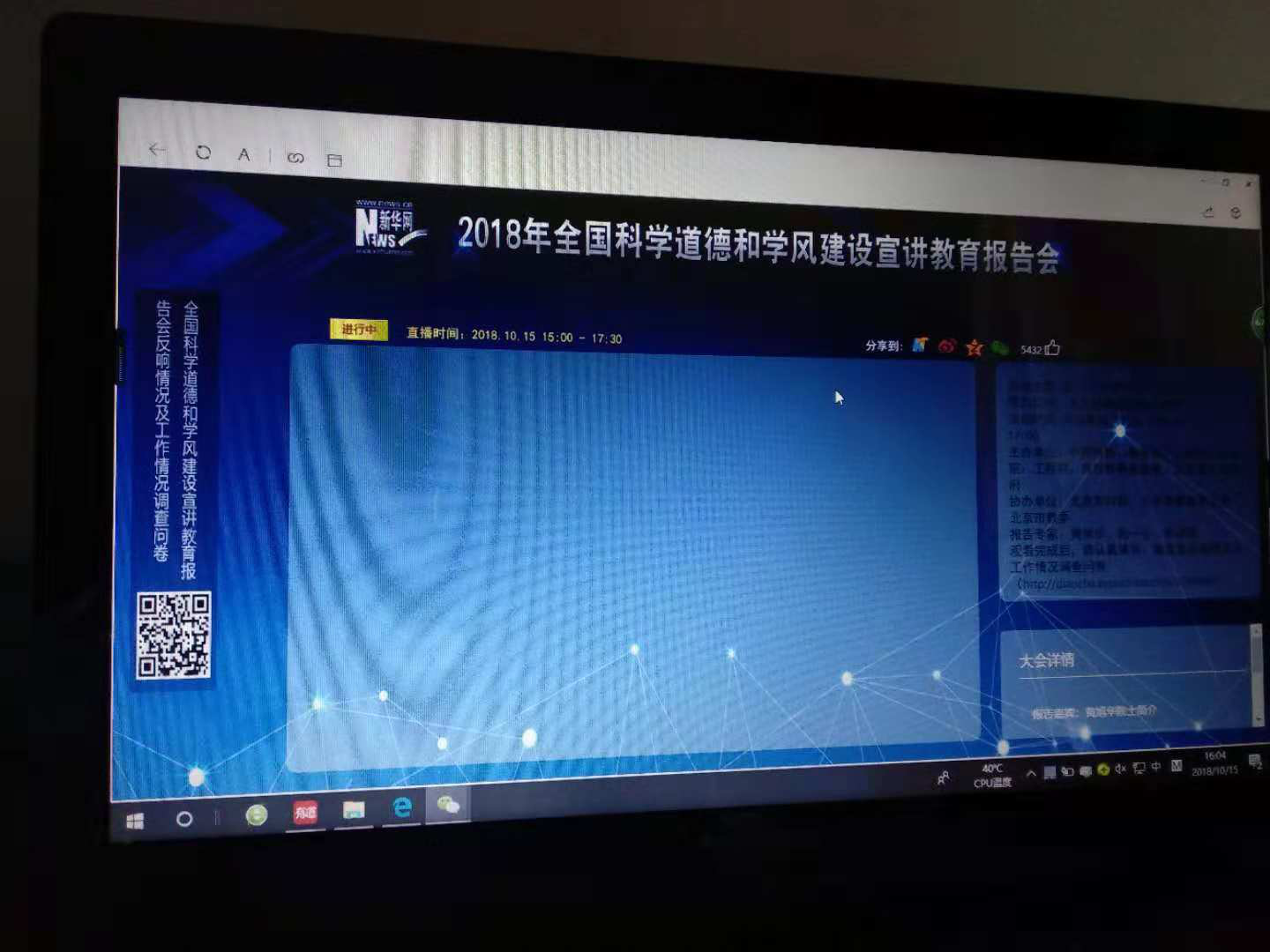 教育学专业黄好:今天下午通过网络视频,实时收看了2018年全国科学道德和学风建设宣讲教育报告会直播。互联网技术让我们仿佛亲临人民大会堂会议现场,更加感受到会议的庄重。作为在校研究生,我们励志潜心学习和科研,为科教兴国贡献力量。