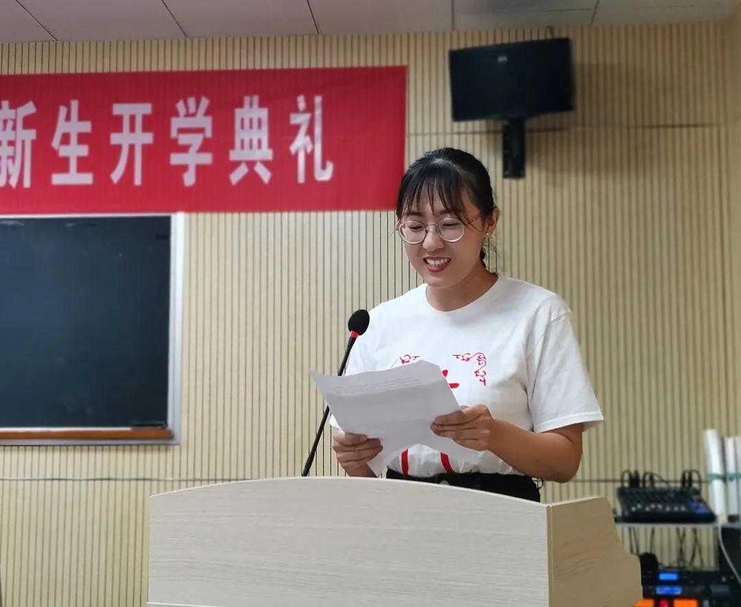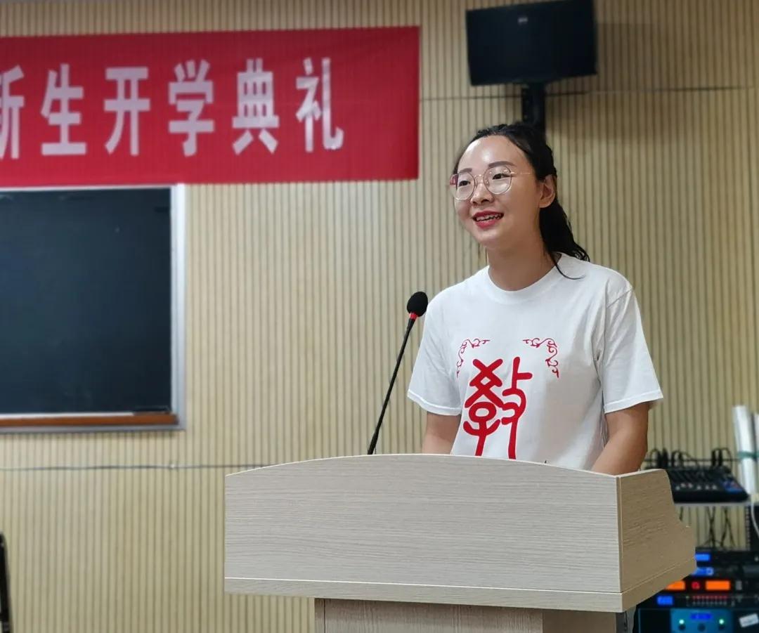 在新生代表发言环节,王迪同学用自己的亲身经历告诉大家,不必拘泥于自己或者别人给予我们的定义和标签,要不断地去尝试更多的新身份,用有限的青春与生命去创造无限的希望与可能。