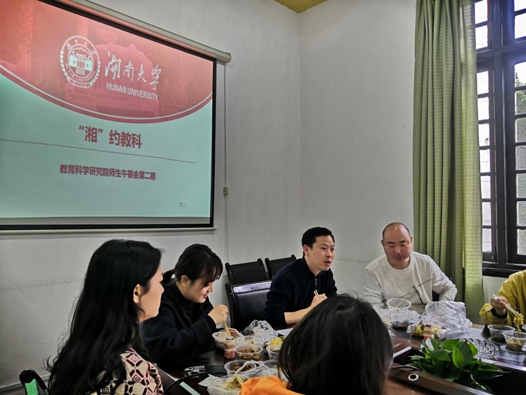 3月16日,我院第二期师生午餐会于学院会议室310举办。此次师生午餐会以“湘”约教科为主题,旨在拉近师生之间的距离,促进师生之间、生生之间的交流。阳征书记、全薇老师、张善超老师、田琳老师、柏静老师以及14名同学参与了此次午餐会。