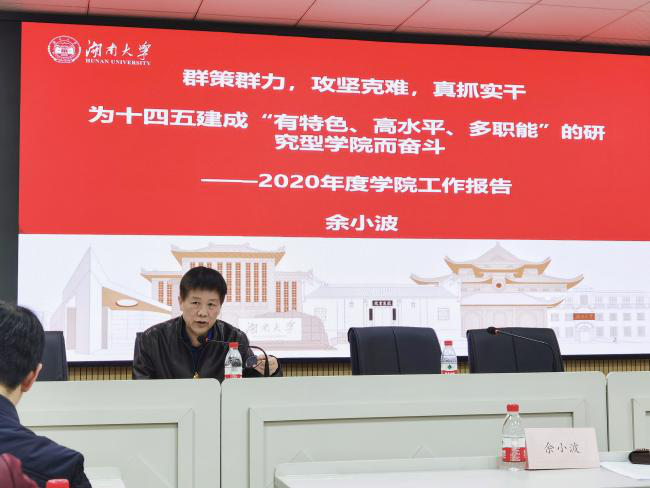 院长余小波代表学院作行政工作报告,回顾了2020年工作,提出了2021年学院的工作目标和重点任务。副院长徐丹作2020年度学院财务工作报告,院工会副主席李震声作2020年学院工会工作报告,院工会委员袁建林作提案工作报告,党总支书记、工会主席阳征作院工会十四五规划方案(草案)说明。大会以举手表决的方式,通过了学院行政工作报告、财务工作报告、工会工作报告、提案工作报告和院工会十四五规划方案(草案)。