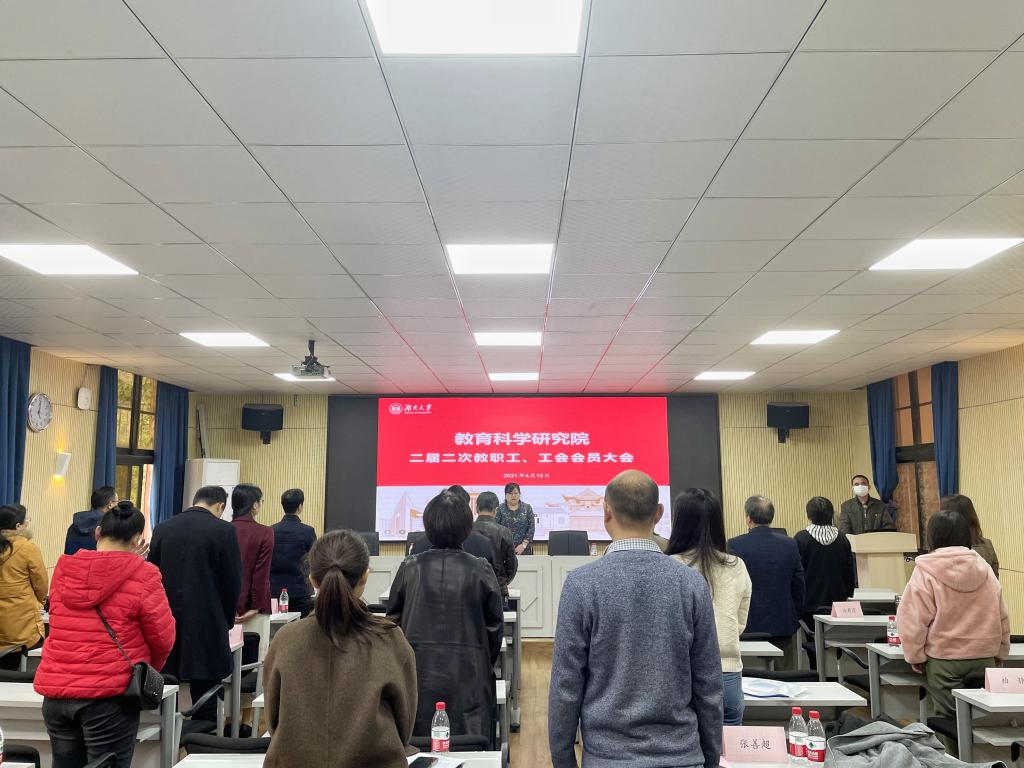 2021年4月15日,我院在培训小楼502报告厅召开二届二次教职工、工会会员大会。大会在雄壮的国歌声中开幕,会议应到代表25名,因出差、生病等原因请假3名,实到22名,符合法定人数。大会由副院长蒋家琼主持。