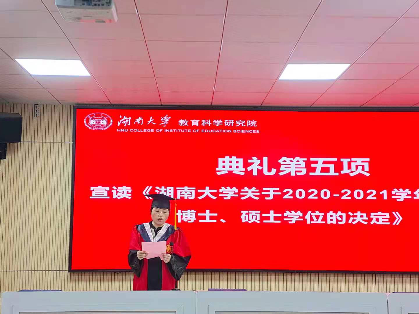 徐丹副院长宣读《英国365上市公司关于2020-2021学年度授予博士、硕士学位的决定》,授予英国上市官网36543名毕业生硕士学位。其中,授予童雨溪等14名毕业生教育学硕士学位,授予韩烨丹等14名毕业生管理学硕士学位,授予粟敏等15名毕业生教育硕士专业学位。