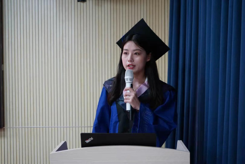 2021届毕业生代表刘文静、韩烨丹、胡松依次发言,怀念湖大教科的青春岁月和求学时光,感恩师长的悉心栽培和热心帮助,感念同窗好友的鼓励支持和陪伴成长,表示一定牢记“实事求是、敢为人先”的校训,立传道济民之志,扬湖大教科之光。