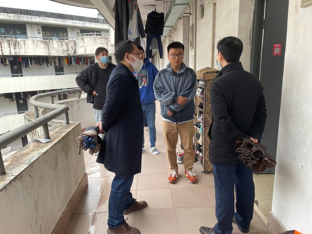 走访过程中,领导和老师们充分了解同学们在日常生活、学习科研、求职就业等方面的具体情况。叮嘱同学们要严格遵守学校疫情防控要求,积极调整学习状态,保持乐观心态,遇到突发问题及时联系辅导员;提醒同学们非必要不离校,出门必带口罩,不参加聚集性活动,最大限度降低与感染源接触的可能性;同时,注意保持良好的生活习惯,适当参加体育锻炼,共同创造温馨和谐的宿舍环境。