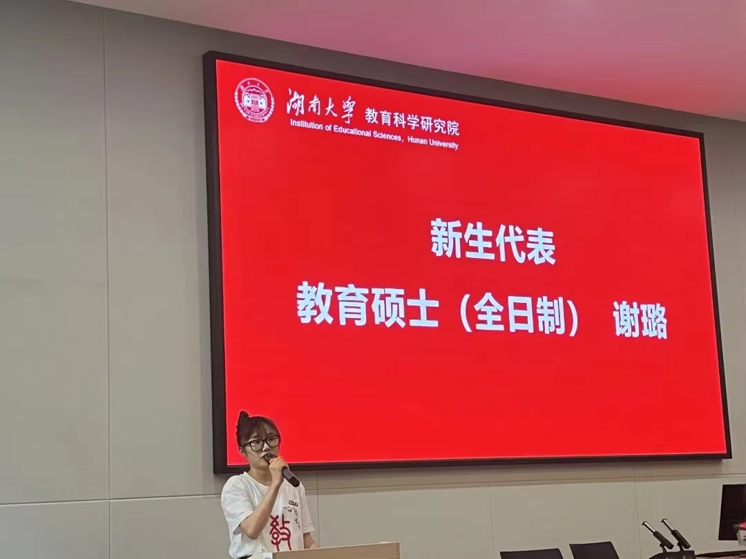 我是2022级教育管理专业研究生新生谢璐。受教诲之德,感化育之恩,我在此十分荣幸代表教育管理专业作迎新讲话。