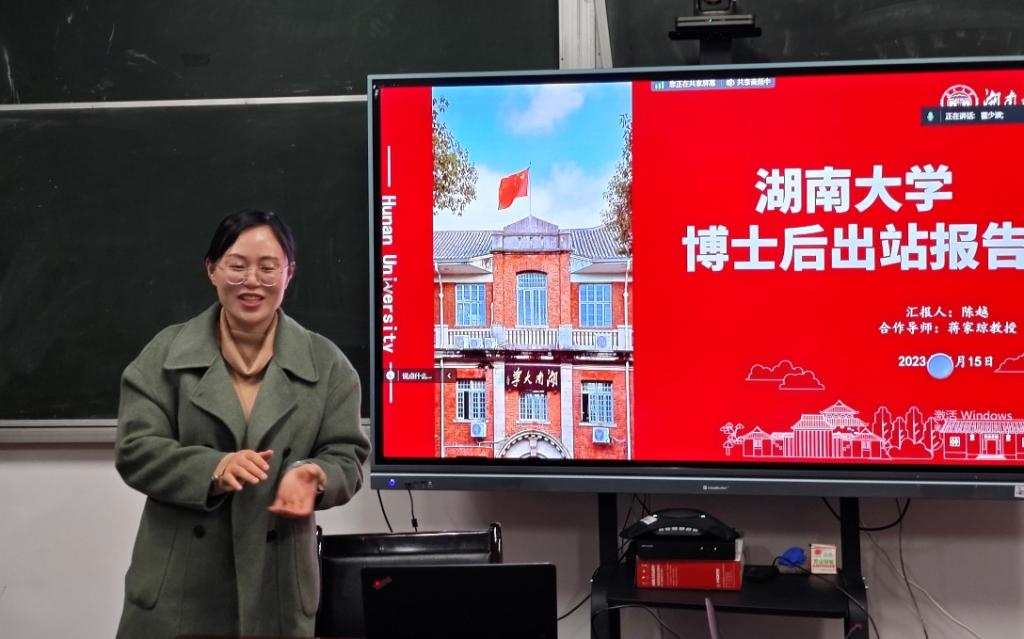 首先,蒋家琼教授对陈越在站期间的研究成果、研究投入和出站报告选题和研究的基本情况进行了简要介绍,对陈越在博士后期间的表现给予了充分的肯定。