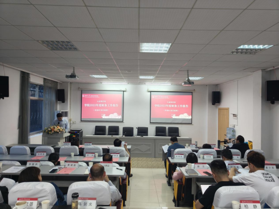 院长罗仲尤代表学院作2023年度工作报告。他指出,2023年在校党委和校行政的正确领导下,学院坚持以习近平新时代中国特色社会主义思想为指导,贯彻落实总书记来校考察调研重要讲话精神,牢记为党育人、为国育才使命,团结带领全院教职工围绕学院“十四五”发展规划目标,聚焦战略目标、强化党建引领、提高管理服务效能、彰显学科特色、强化师资队伍支撑、提升人才培养质量、开展高水平校本研究、扩大办学办刊影响力,努力推进学院各项事业向前发展。2024年学院将坚持以习近平新时代中国特色社会主义思想为指导,以开展“服务国家战略行动年”活动为契机,全面提高学院人才培养质量、科研实力和校本研究水平,将学院建成高水平、特色型、开放式的教学科研机构。