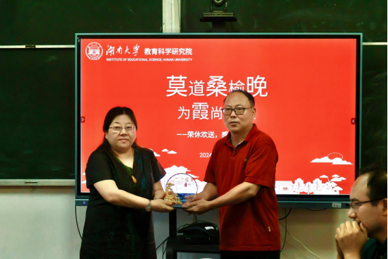 学院工会主席蒋家琼为胡弼成教授颁发荣休纪念品