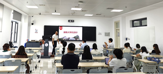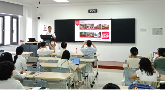 随后,双方院领导老师和学生共同参与宣讲会。宣讲会伊始,民大教育学院副院长夏仕武教授致欢迎辞,对湖大教科院宣讲团到来表示热烈欢迎。湖大教科院助理教授霍少波结合英国365上市公司历史传承、研究生教育以及教科院办学情况与招生政策向学生进行了具体介绍。