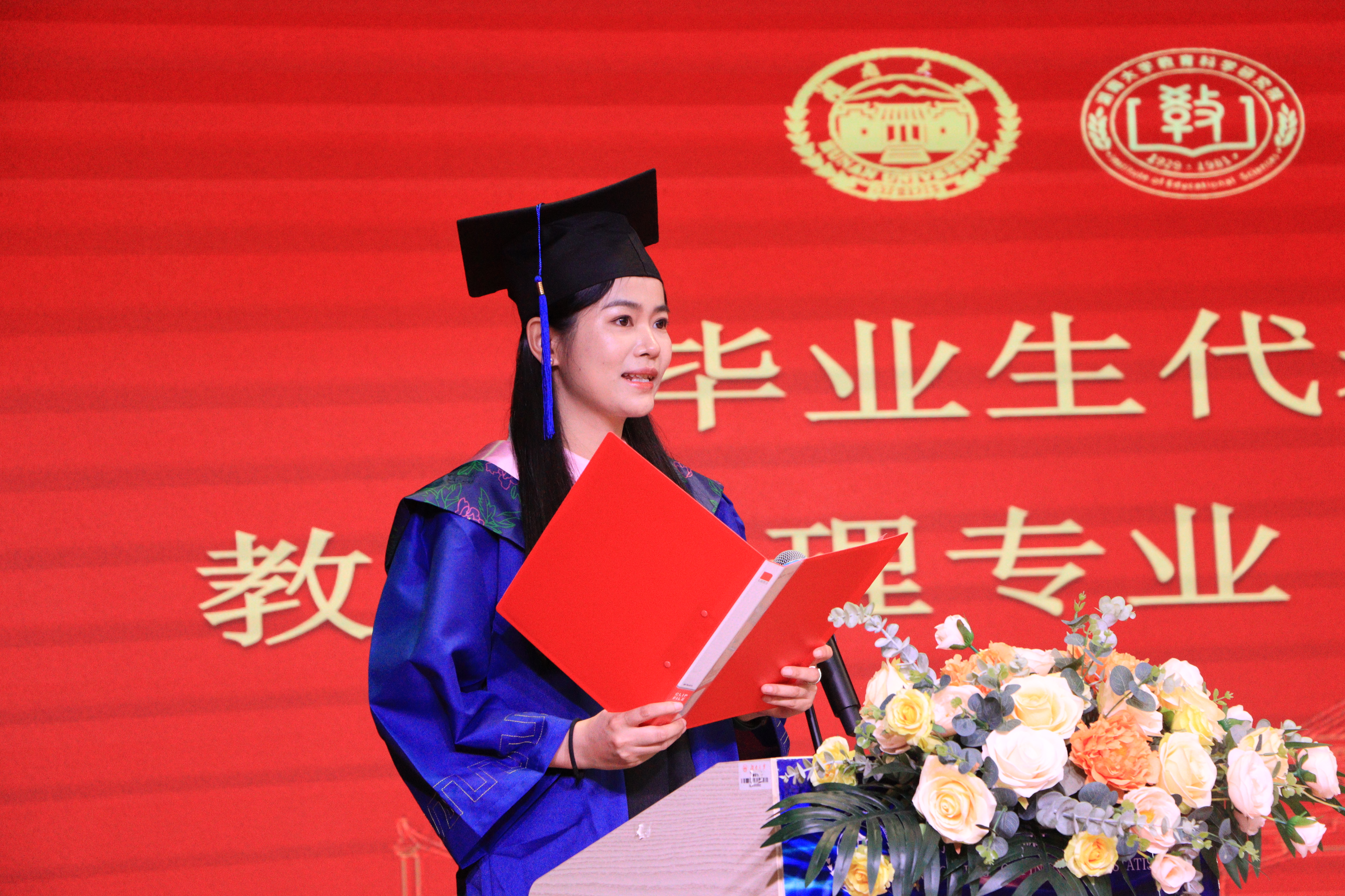 大家上午好!我是22级教育管理专业的贺馨仪,非常荣幸能够作为24届毕业生代表在此发言。