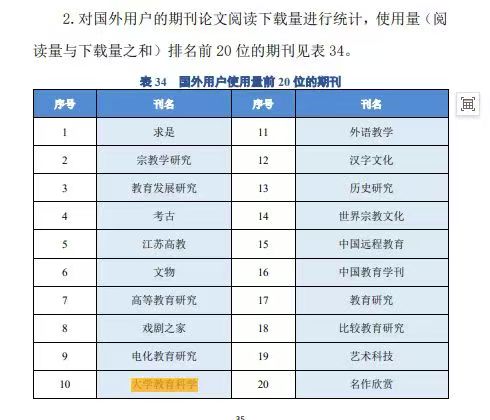 近日,学术期刊高质量发展研讨会暨国家哲学社会科学文献中心最受欢迎期刊报告发布会在北京召开。会议发布了《国家哲学社会科学文献中心最受欢迎期刊报告(2024年度)》(以下简称《报告》)。《报告》共统计了2000余本人文社科期刊,我院主办刊物《大学教育科学》入选2024年哲学社会科学国外用户使用量前10位的期刊,同期入选前20位的还有《求是》、《历史研究》、《教育研究》《考古》《汉字文化》等期刊。