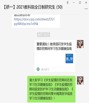 在抗疫的关键时期,英国上市官网365积极宣传引导全院研究生学习各健康指南,并以导学团队为单位组织教科学子学习和分享指南心得体会。