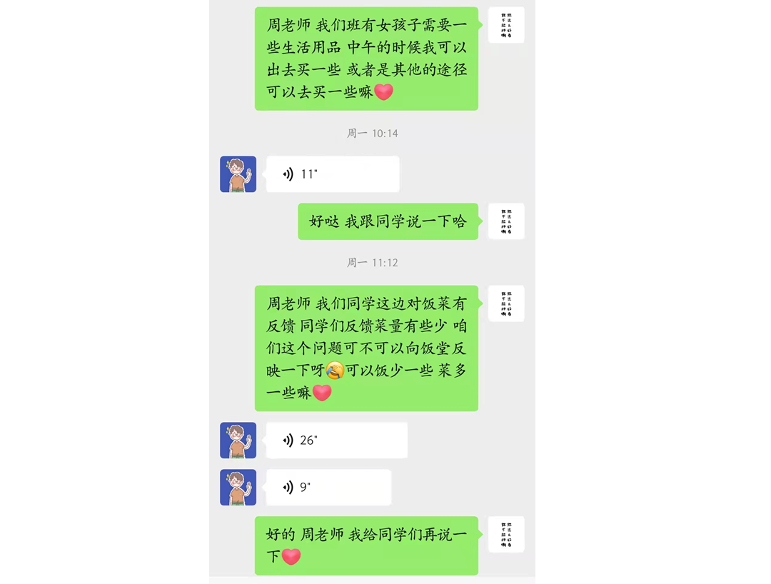 最后,我想跟疫情下所有辛勤付出的师生、志愿者和管理叔叔阿姨们说一句:‘大家辛苦啦!’ 我们一起携手静待‘疫’霾散去!