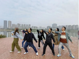 到达第二关卡荷花台后,碧空万里,水天一色。师生在工作人员的协助下,以湖为幕进行趣味影像留念。各队在创意姿势的合作拍摄中增进了解、加强信任,提高了活动趣味性和团队凝聚力。