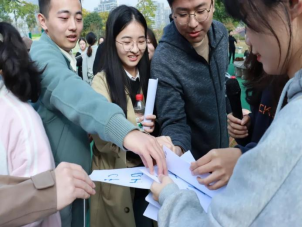 在“比学赶帮超”的良好氛围中,“双阳开泰”队率先抵达第四关卡秀广场。其他队伍也不甘落后,抵达后纷纷上交题库,认真投入二十大、四史、校史、院史知识竞答,在知识碰撞中深化对湖大历史、红色文化的认识与理解。答题完成后,师生分队进行夹纸跑和画画接龙游戏。现场氛围热烈,各队的默契程度更是令人拍手叫绝。