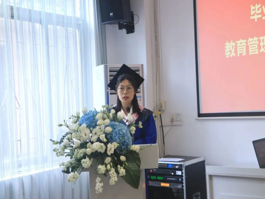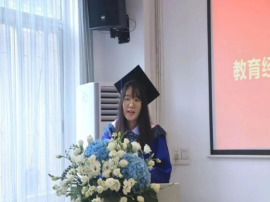 2023届毕业生代表韦凤彩、杨菲、刘美琳、黄文君依次发言。她们回顾了在湖大教科院与老师和同学相伴相成长的求学时光,感恩学院老师们的悉心栽培和同学们的陪伴照顾,并真诚地祝愿母校和学院桃李天下,蓬勃发展。最后,她们都纷纷表示会时刻牢记“实事求是,敢为人先”的校训,传递湖大精神,肩担教科使命,在新时代、新征程中书写青春荣光。