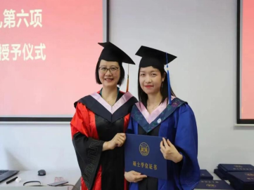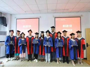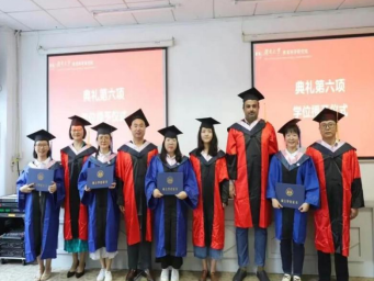 宣读完毕,毕业生依次上台,罗仲尤教授、余小波教授、蒋家琼教授、阳荣威副教授、刘声涛副教授、朱恬恬副教授、袁建林副教授、冯君莲副教授、AZEEM副教授、张善超助理教授、田琳助理教授为毕业生们正冠拨穗、颁发学位证书并合影留念。
