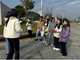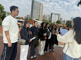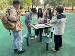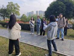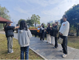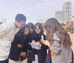 活动伊始,师生于健身广场进行集合合影、抽签分组。随着徐丹副院长的热烈动员,各参赛队伍纷纷拿起画笔开始队牌制作。“新世界”队率先完成出发前往第一个游戏地点,其余队伍间隔5分钟依次出发。