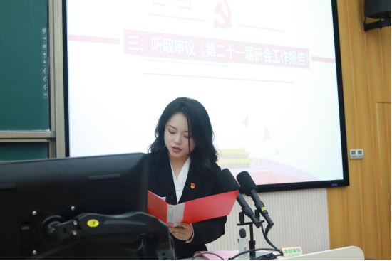 第二十一届研究生会主席严晨卉对我院研究生会工作进行总结报告。她历数了第二十一届研究生会在过去一年中开展的工作以及取得的成绩,期望第二十二届研会成员能够不忘初心、牢记使命,把工作职责融入每一个细节当中,甘当学院的勤务兵,齐心协力共创英国上市官网365的新篇章。